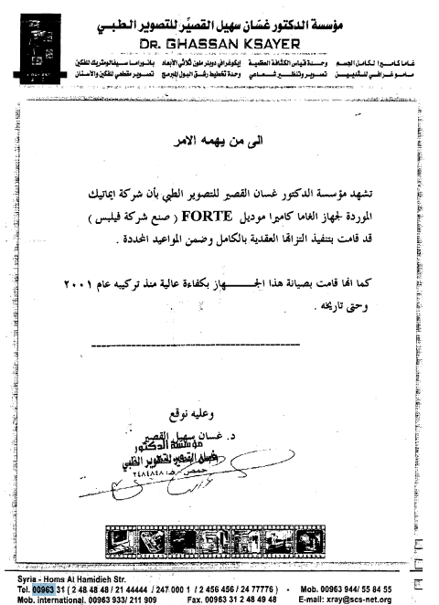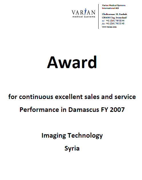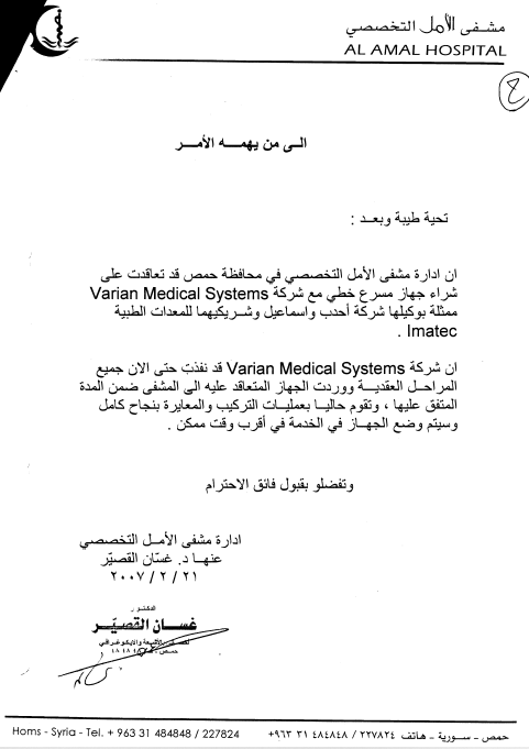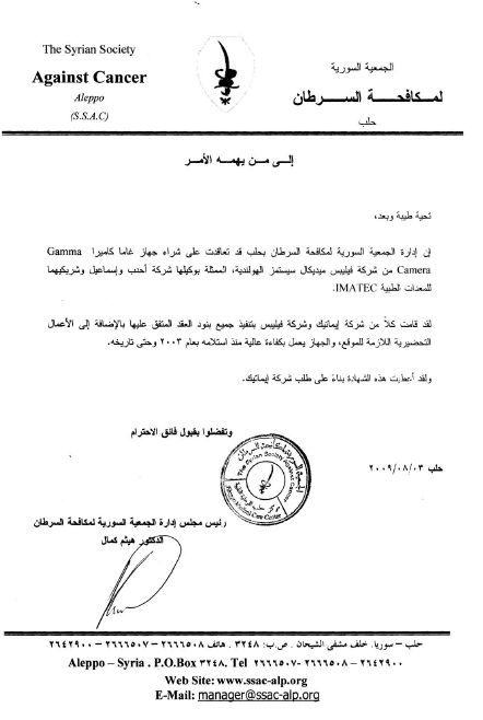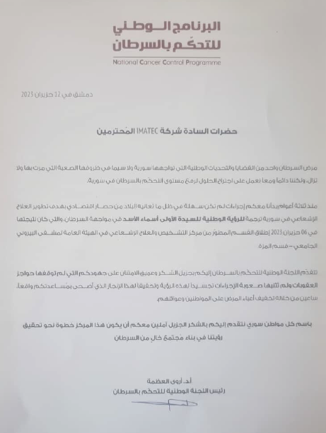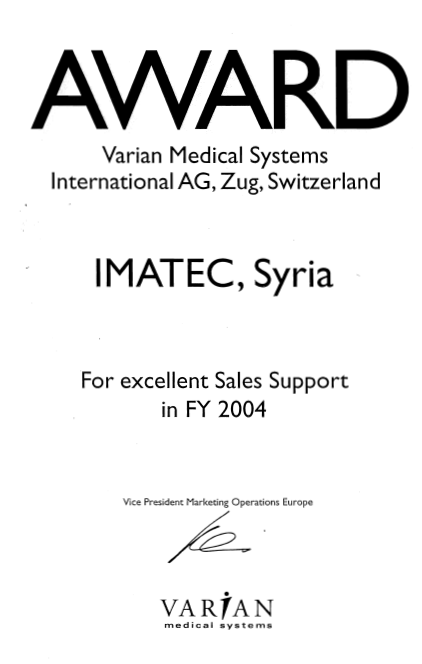 - IMATEC also became the representative for CIS BIO (France), introducing brachytherapy systems to Syria and marking the sale of the first system of its kind in the country.