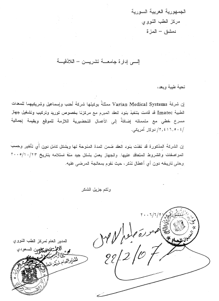 2006- Nuclear Medicine center, Damascus
