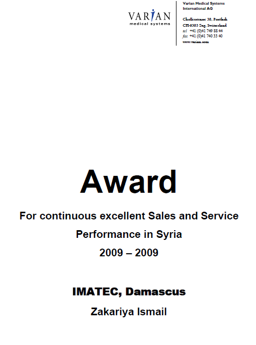 Awards by Varian to IMATEC