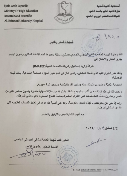 2025- Al Bairouni Hospital, Appreciation Letter